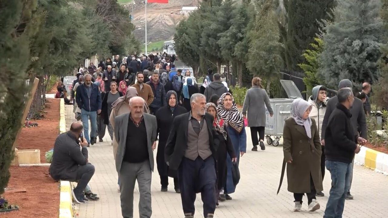 Adıyaman'da Ramazan ayının son gününde vatandaşlar, mezarlık ziyaretinde bulunuyor. 6 Şubat 2023 depremlerinde hayatını kaybedenlerin yakınları mezarlığı ziyaret etti. Ellerinde Kur'an-ı Kerim ile dualar eden depremzedeler, gözyaşlarını tutamadı. Mezar taşlarına sarılan depremzedeler gözyaşı döktü.