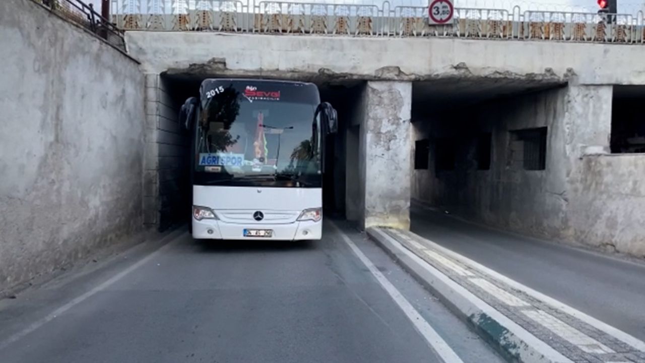 Vali Muammer Güler Sahası'nda antrenman yapan oyuncuları otele götüren 04 AS 250 plakalı otobüs, merkez Kocasinan ilçesi Bağdat Caddesi'ndeki alt geçide sıkıştı kaldı. Otobüsün lastiklerinin havası indirilerek sıkıştığı yerden kurtarıldı.
