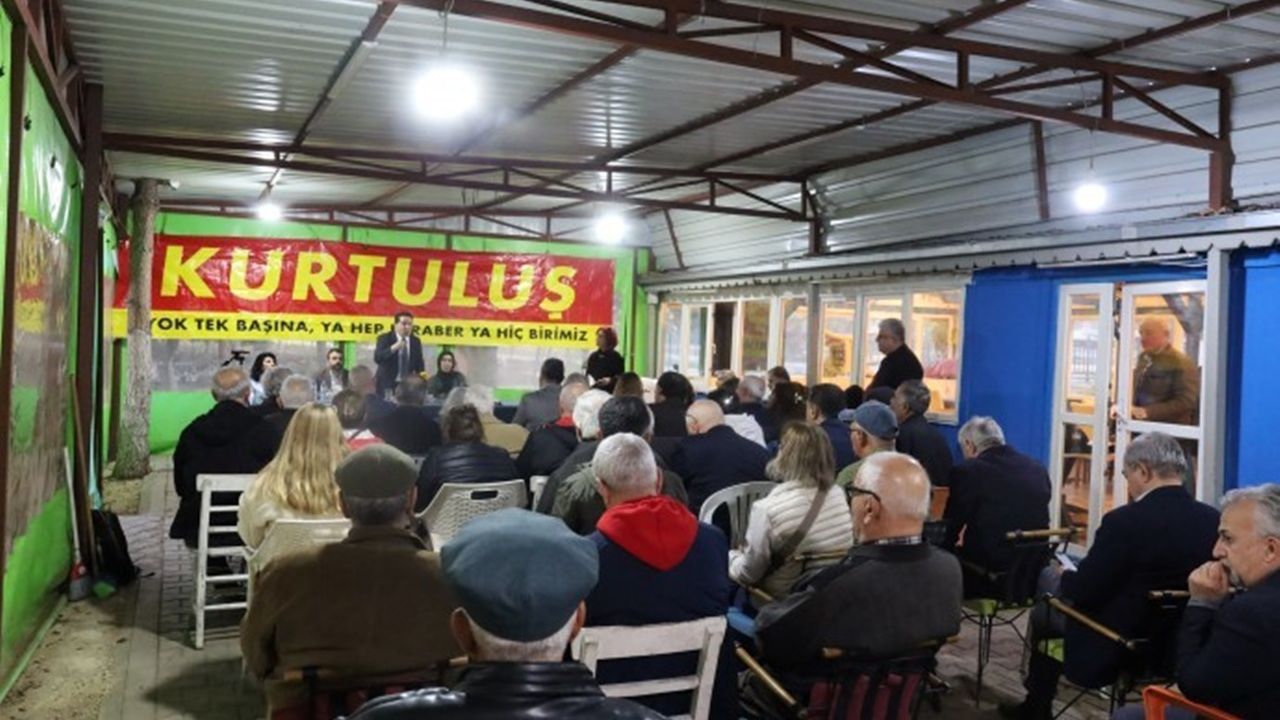 Mersin Dayanışma Platformu, yerel yönetim deneyimleri ve kayyım uygulamalarını tartışmak amacıyla eski Tevfik Sırrı Gür Stadyumu yanında bulunan bir kafede söyleşi gerçekleştirdi.