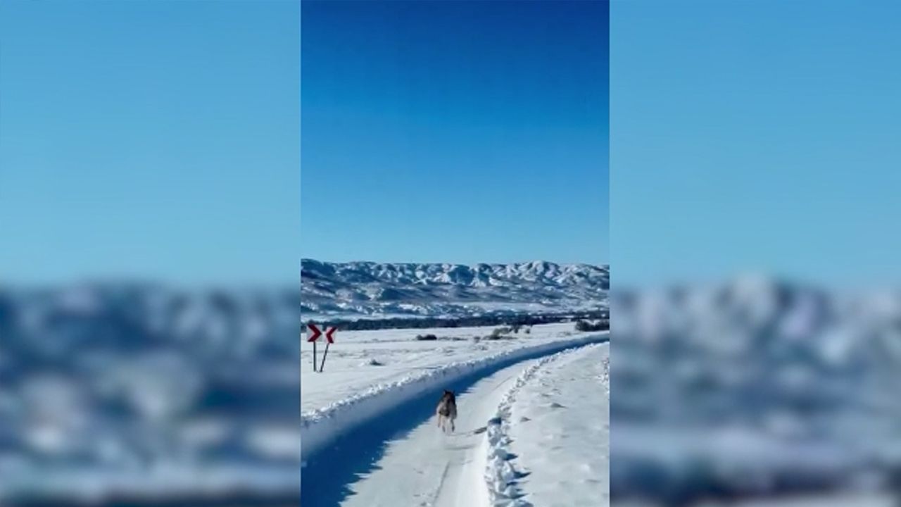 Karla kaplı yolda ilerleyen ambulansın önüne çıkan kurt koşmaya başladı.