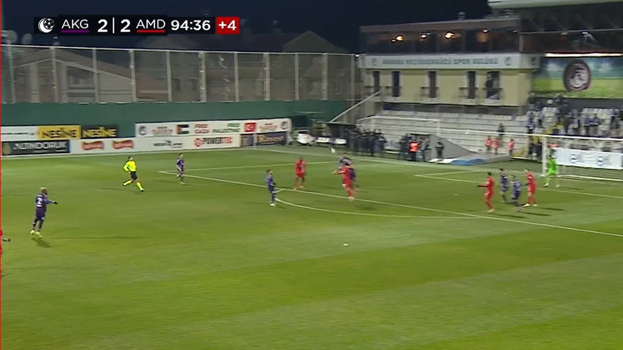 Maçın 17. dakikasında Mbaye Diagne skoru eşitledi. 28’inci dakikada Daniel Moreno’nun golü ile Amedspor 2-1 öne geçti.