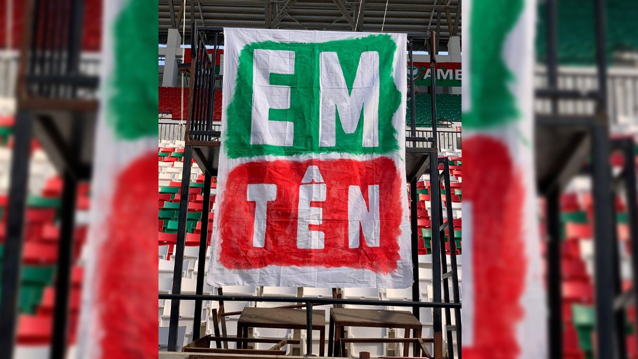 Öte yandan yeşil kırmızılı taraftarlar "Biz geliyoruz" anlamına gelen Kürtçe olarak, "Em tên" yazılı pankart açtığı görüldü.