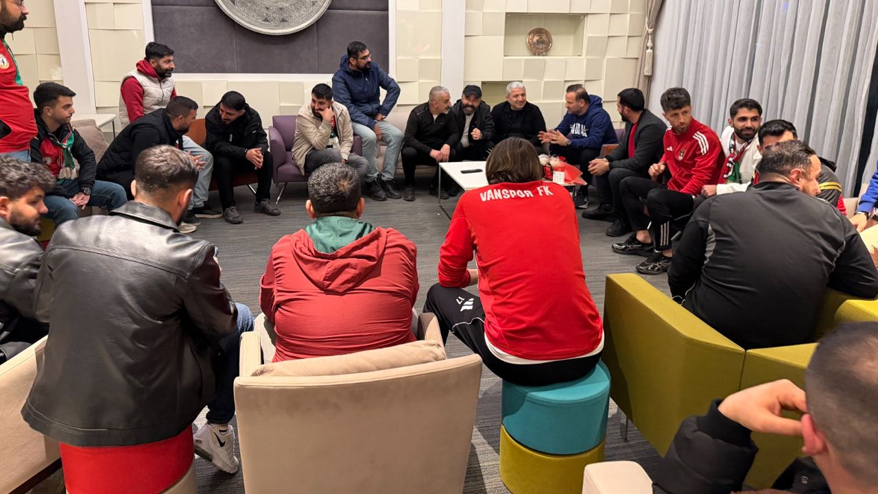 Amedspor’un taraftar gruplarının temsilcileri Vanspor kafilesini kaldığı otelde çiçeklerle ziyaret etti. Taraftar gruplarının temsilcileri ile Vanspor teknik direktör Osman Zeki Korkmaz ve futbolcularla sohbet etti.