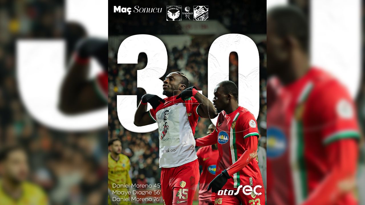 43.dakikada Amedspor atağında Diagne'nin ara pasında Moreno bos kaleye topu gönderdi.1-0