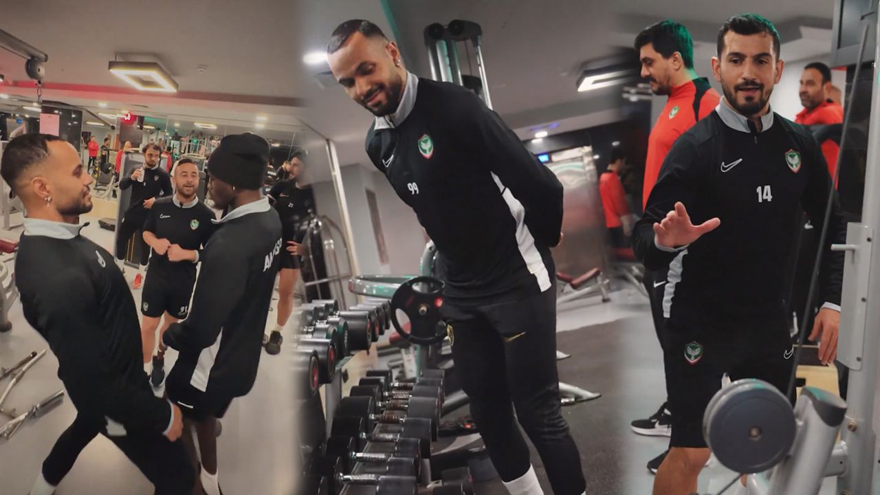 Yeşil-kırmızılı ekip, günün ilk idmanını salonda yaparken futbolcuların yüksek enerjisi dikkatlerden kaçmadı.