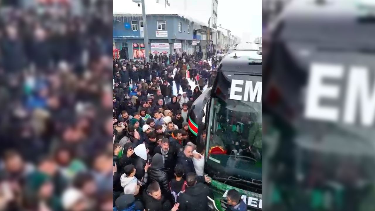 Saat 13.30’da Erzurum’da oynanacak kritik karşılaşma için dün karayoluyla yola çıkan Amedspor, Karlıova’da vatandaşların sevgi seliyle durduruldu. Soğuk havaya rağmen yüzlerce yurttaşın oluşturduğu coşkulu karşılama, takım otobüsünü uzun süre ilerleyemez hale getirdi. Ortaya çıkan renkli görüntüler kısa sürede sosyal medyada binlerce kez paylaşıldı.