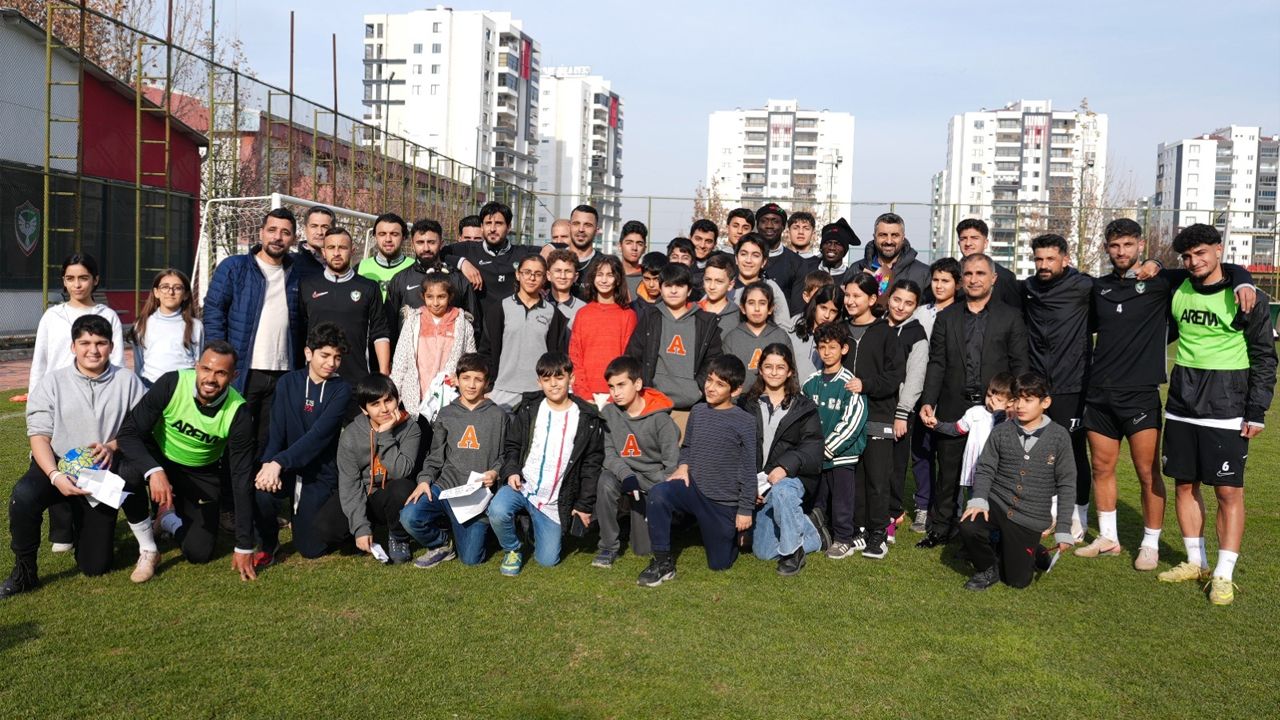 Diyarbakır’da Akşemsettin Ortaokulu öğrencileri ve öğretmenleri, Amedspor idmanını izleyerek, futbolcularla bir araya geldi.