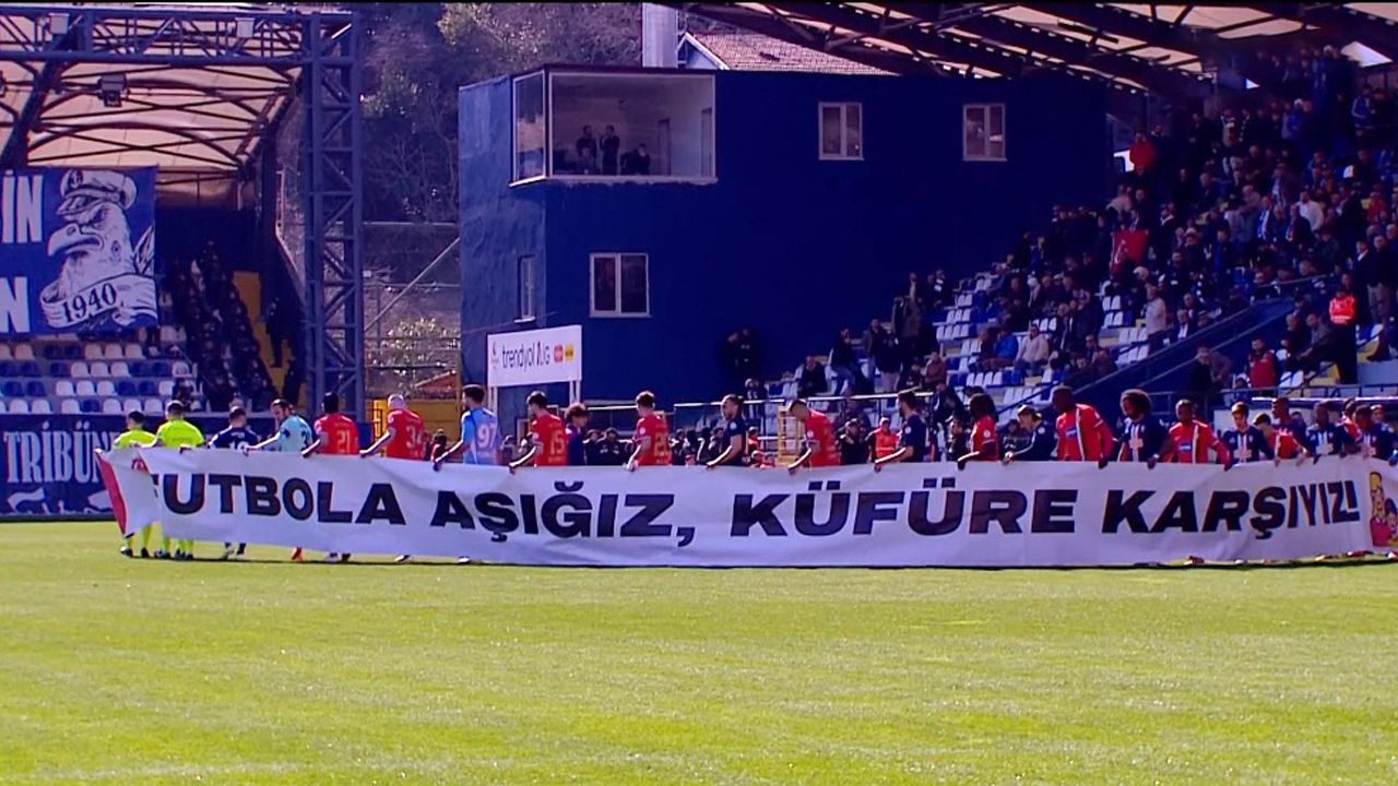 Maç, güneşli ancak soğuk bir havada başladı. Her iki takımın futbolcuları, “Futbola aşığız, küfüre karşıyız” yazılı pankartla çıktı.