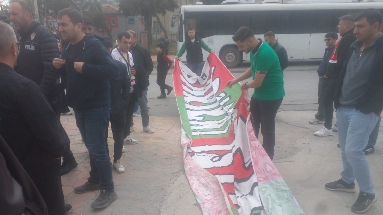 Amedspor Barikat taraftar grubu misafir grubu tribünlerine pankartlarını asmak için stadyuma girmek istedi. Polis pankartı kontrol ederek sadece bir pankartın içeri alınmasına izin verdi.