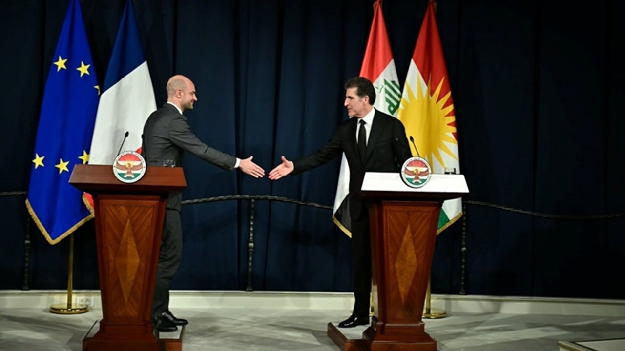 Rudaw’da yer alan habere göre, Fransa Dışişleri Bakanı Jean-Noël Barrot ile Kürdistan Bölgesi Başkanı Neçirvan Barzani, Erbil'deki görüşmelerinin ardından ortak bir basın toplantısı düzenledi.