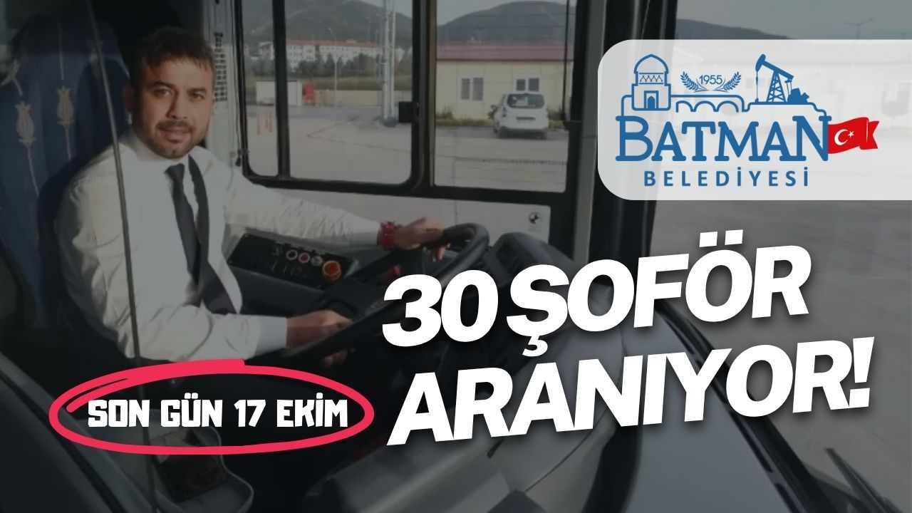 Batman Belediyesi'ne bağlı Personel A.Ş., kentteki toplu taşıma hatlarında görevlendirilmek üzere 30 otobüs şoförü istihdam edeceğini duyurdu. Asgari ücretle yapılacak alım için başvuruların başladığı ve sürecin 17 Ekim'de sona ereceği belirtildi.