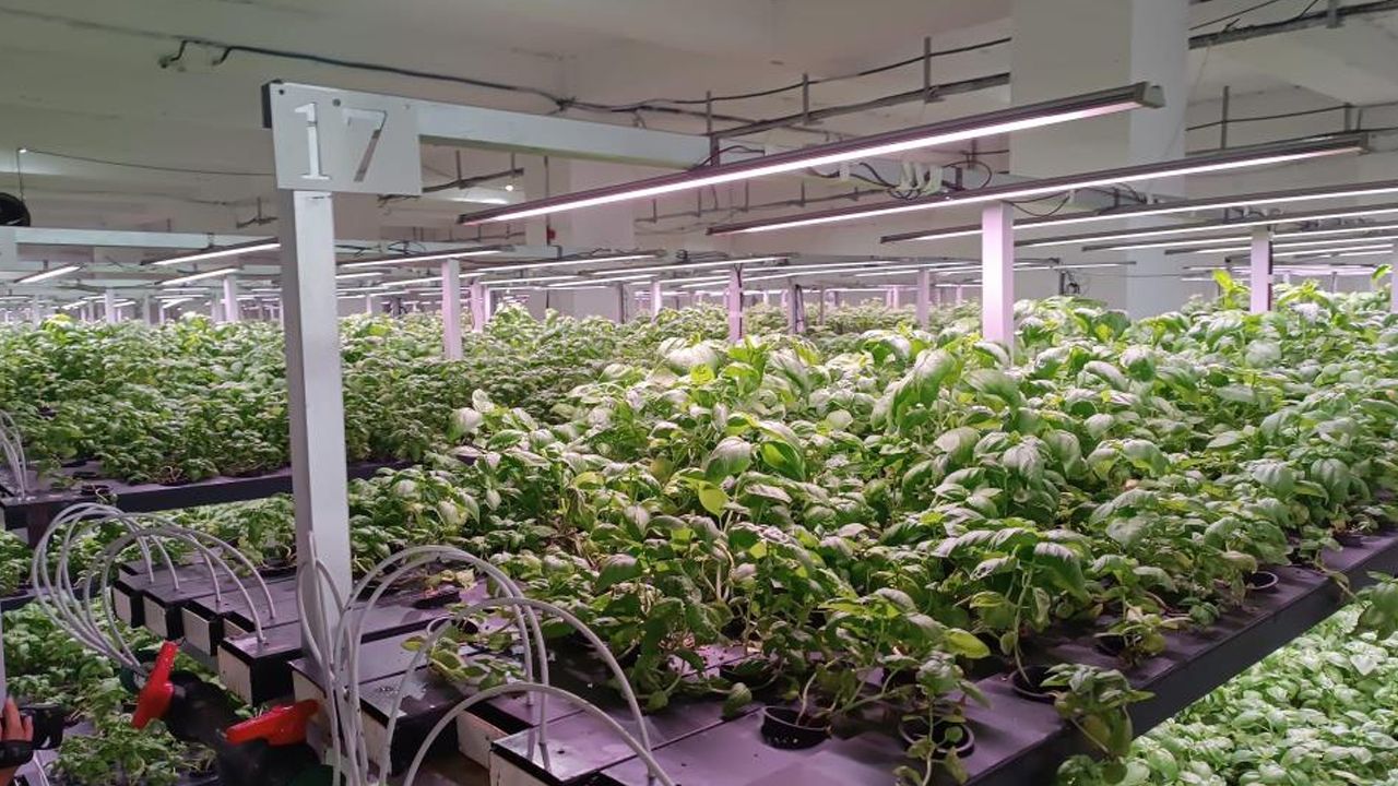 Yaklaşık 30 milyon TL'lik yatırımla eksi birinci katta hayata geçirilen hidroponik sera, bin 100 metrekarelik dikey üretim alanıyla klasik 6 dönümlük seraya eş değer kapasite sağlıyor. Topraksız tarım yönteminin en gelişmiş örneklerinden biri olan tesiste, fesleğen başta olmak üzere pek çok aromatik bitki üç katlı sistemde yıl boyunca kontrollü şekilde yetiştiriliyor.