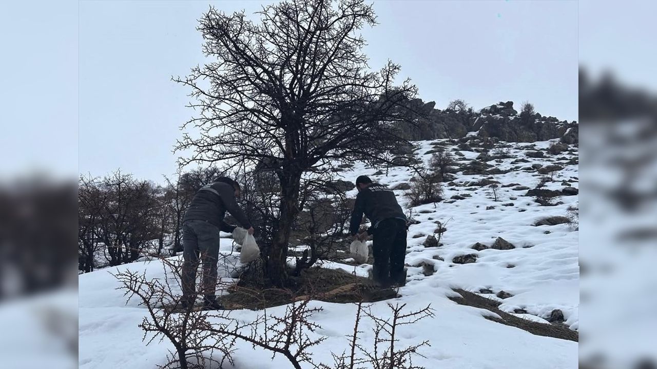 Açıklamada, zorlu arazi koşullarına rağmen çalışmaların gerçekleştirildiği belirtilerek, kuşlar ve yaban hayvanları için çeşitli yemlerin uygun noktalara bırakıldığı kaydedildi.