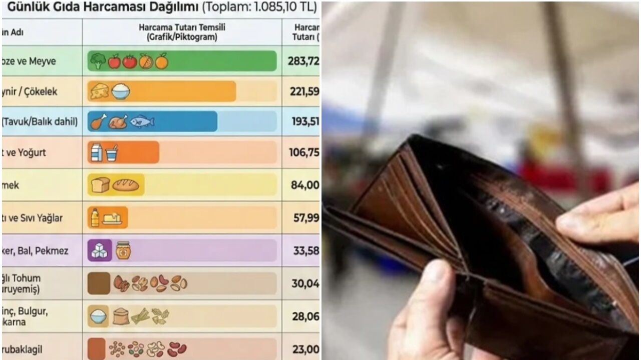 Günlük harcamalarda Mart 2026 ortası itibarıyla en yüksek maliyet grubunu 284 liralık harcama ile sebze ve meyve oluşturdu. Onu 222 liralık harcama gereksinimi ile süt ve yoğurt takip etti. Et ürünleri 194 lira harcama gereksinimi ile öne çıkan ürünlerdendi. Yumurta için yapılması gereken harcama tutarı 23 lira olarak gerçekleşti. Kurubaklagil için bu tutar 23, ekmek için 84, katı yağ ve sıvı yağ için 58, şeker, bal, reçel ve pekmez için ise 34 liradır. Kuruyemiş için ise yapılması gereken harcama miktarı 30 lira oldu.