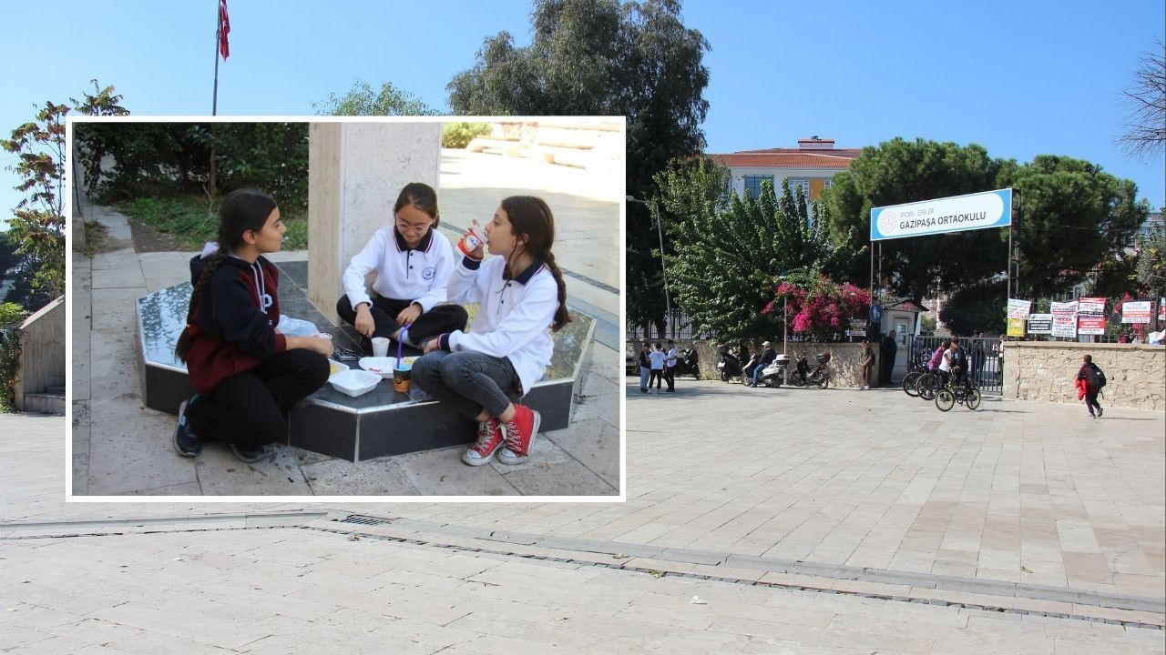 Efeler ilçesinde bulunan Gazipaşa Ortaokulu'ndaki öğle arası dinlenme ve beslenme saatinde, öğrencilerin sokakta sağlıksız ve hijyen şartlarına uymayan bir ortamda yemeklerini yemeleri tepki çekti.