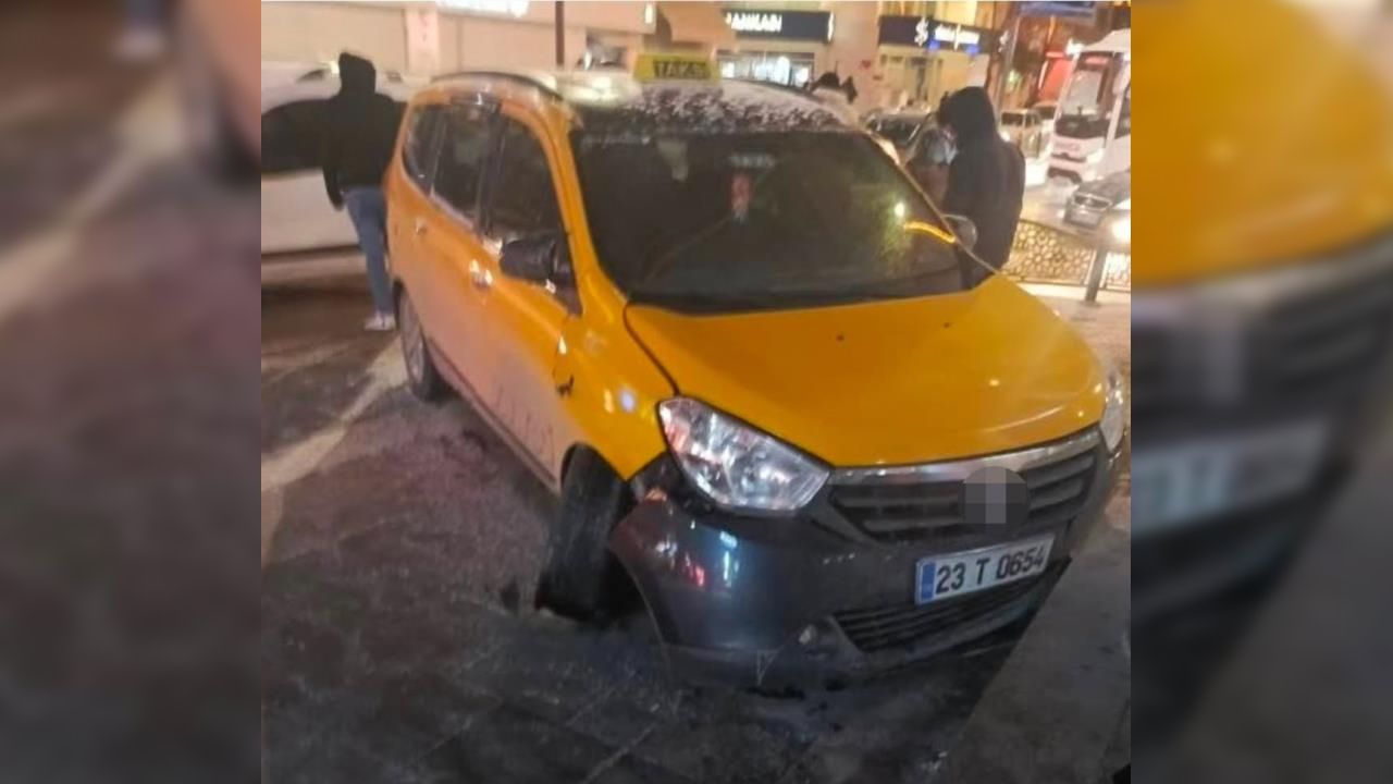 Merkeze bağlı Gazi Caddesinde, alkollü bir şahıs park halindeki 23 T 0654 plakalı taksiyi çalarak kaçtı. Panikleyen sürücü, direksiyon hakimiyetini kaybederek bir bankaya ait para çekme ünitelerinin olduğu kısma çarptı. Kazada yaralanan olmazken, taksiyi çalan şahıs polis ekipleri tarafından gözaltına alındı.