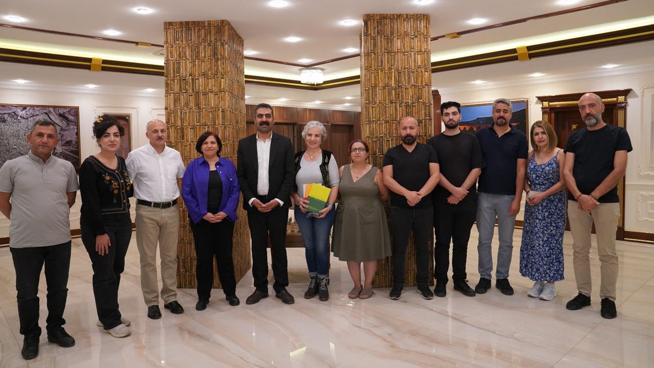 Ziyaretin sonunda Eşbaşkan Hatun, sanatçılara “Dengbeje Anatolian” adlı kitabı hediye etti.