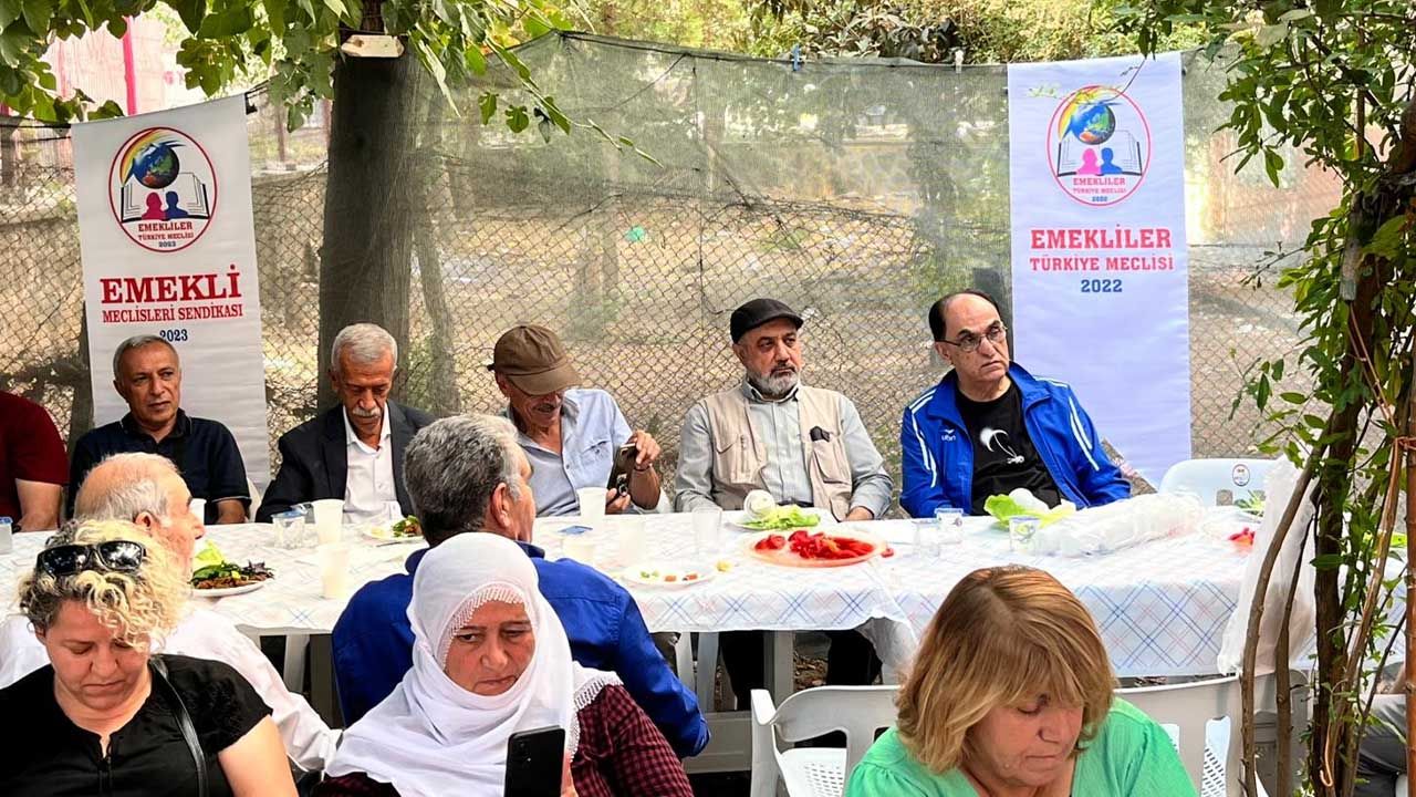 Emekli Meclisleri Sendikası (EMS) Diyarbakır Meclisi tarafından Diyarbakır’da ‘Demokrasi ve Barış Sofrası’ etkinliği düzenlendi. Açılış konuşmasını aktivist Menaf Şeker’in yaptığı etkinliğe birçok yurttaş katıldı. Emekliler açısından tarihin en zor dönemlerinden geçtiklerini belirten Şeker, “2008 öncesinde asgari ücretin üzerinde olan en düşük emekli maaşı, bugün asgari ücretin çok altına, açlık sınırının yarısına kadar gerilemiştir. Üstelik memur, işçi, Bağ-Kurlu, dul, yetim ve engelli emekliler, en düşük maaşta eşitlenmeye çalışılmaktadır. Bu tablo karşısında yalnızca emeklilerin değil, işsizlerin, asgari ücretlilerin, ev kadınlarının, dul ve yetim aylığı alan herkesin ortak sesi olmalıyız. Çünkü kimse alışverişte ırk, inanç veya siyaset farkı gözetmeden aynı fiyatı ödüyorsa; biz de mağduriyet karşısında aynı çatı altında birleşmeliyiz. Bu açlık, yoksulluk ve sefaleti aşmanın tek yolu etkin, yaygın, kitlesel ve güçlü bir sendikal hareket yaratmaktan geçiyor” dedi.