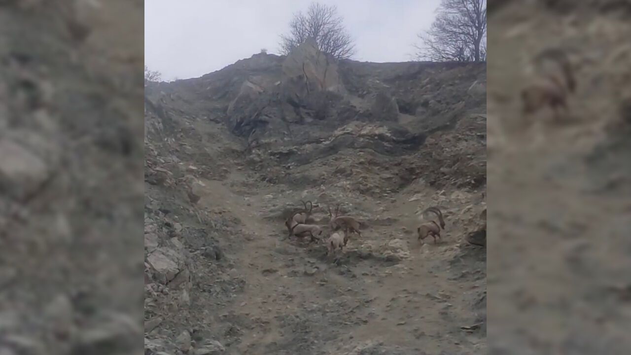 Sabah saatlerinde Muzaffer Bayram isimli vatandaş tarafından cep telefonu kamerası ile görüntülenen dağ keçileri, sarp kayalıklarda ustaca gezip yiyecek aradı.