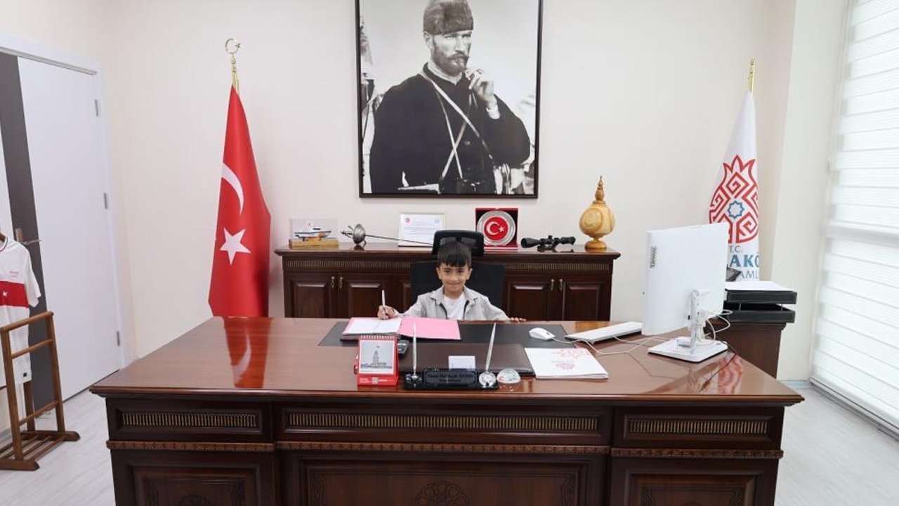 23 Nisan Ulusal Egemenlik ve Çocuk Bayramı etkinlikleri kapsamında Atatürk İlkokulu 4. sınıf öğrencileri Muhammed Baki Yıldız ve Melek Hafsa Akdemir, kaymakamlık makamına oturdu. Geleceğin teminatı olan çocuklar, bir günlüğüne üstlendikleri bu anlamlı görevde hem heyecan yaşadı hem de sorumluluk bilinci kazandı.