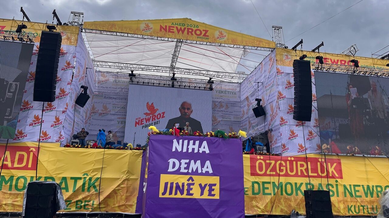 Yüzbinleri buluşturan Amed Newrozu tüm coşkusuyla sürerken, merakla beklenen Abdullah Öcalan’ın mesajı da okundu. İmralı Cezaevi’nde uzun yıllar Abdullah Öcalan ile birlikte kalan Veysi Aktaş ve Özgür Kadın Hareketi’nden (TJA) Medya Aslan okudu.