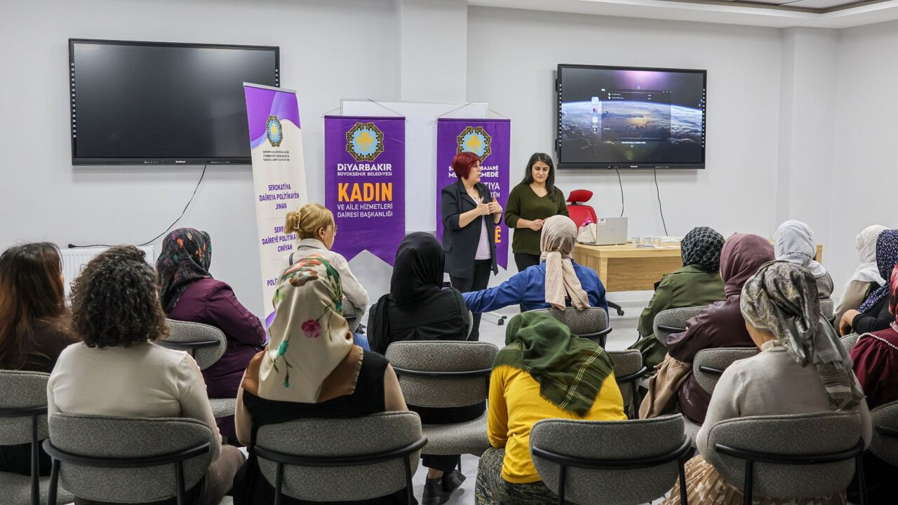 Kadın Politikaları Dairesi Başkanlığının “Döngümüzle Dönüşüyoruz” sloganıyla yürüttüğü çalışma, Silvan Belediyesi Kadın Politikaları Müdürlüğü iş birliğiyle Nudem Kadın Dayanışma ve Yaşam Merkezi’nde gerçekleştirildi. Atölyeye Silvan Belediyesi Eşbaşkanı Sevim Biçici ile atölyeden yararlanan kadınlar katıldı.