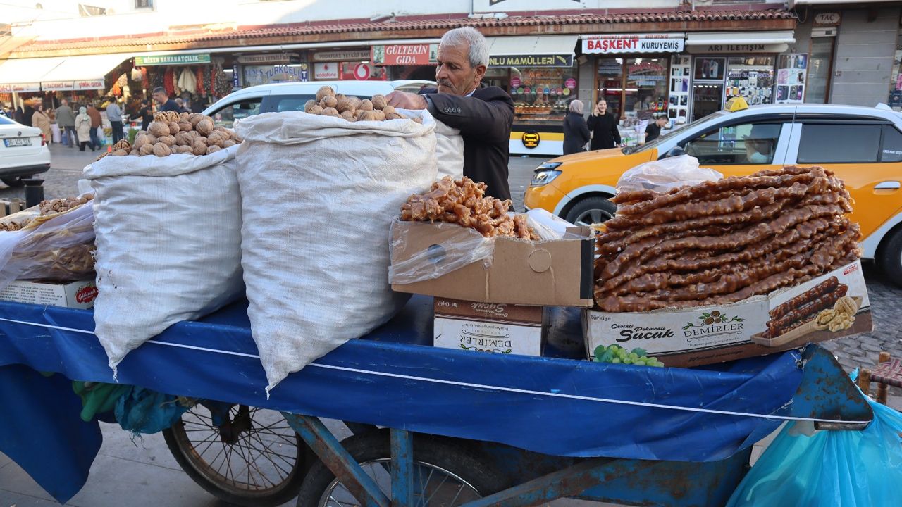 Sur’da yaklaşık otuz beş yıldır ceviz, cevizli sucuk ve pestil satan Mehmet Siber, hem Diyarbakır’ın yerel ürünlerini hem de Mardin’den getirdiği pestilleri tezgâhında bulundurduğunu belirtti.