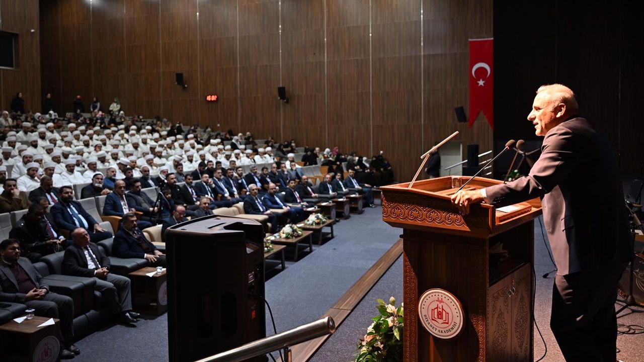 “İmamlık sadece 5 vakit ezan okuyup, camiye gelenlere namaz kıldırmak asla değildir, olmamalıdır. İmam görev yaptığı köyde, mahallede yeri geldiğinde abi, yeri geldiğinde baba, yeri geldiğinde de evlat olmak durumundadır. İmam-hatip kardeşim mahallesinde aynı zamanda öncüdür, liderdir, rehber kişidir.”
