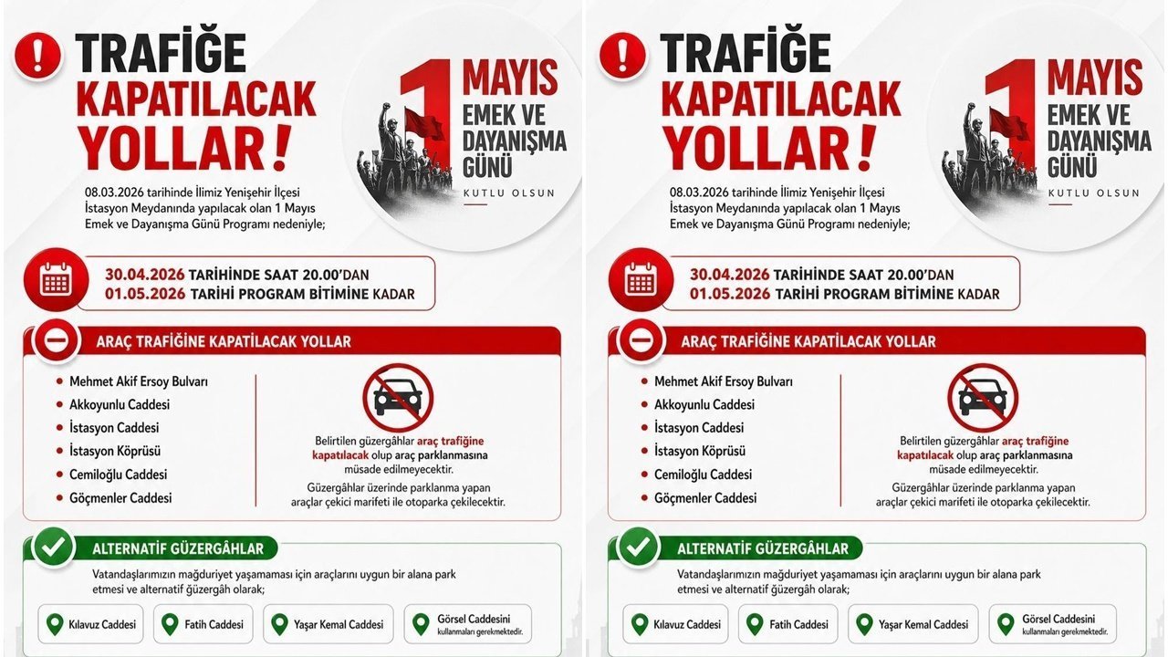 Diyarbakır Valiliği, İstasyon Meydanı’nda yapılacak 1 Mayıs mitinginde trafiğe kapatılacak yolları ve alternatif güzergahları açıkladı.