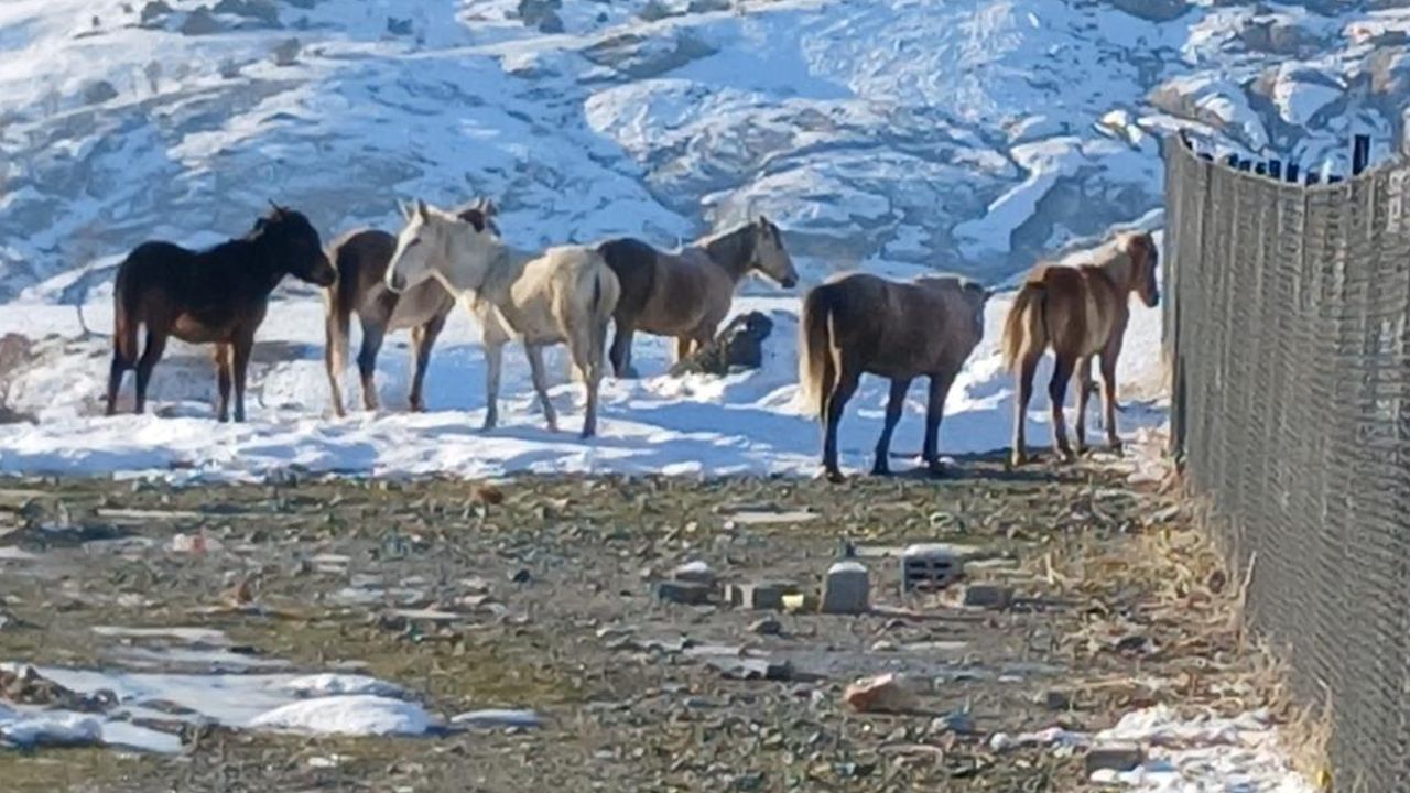 Kulp ilçesinde etkisini sürdüren soğuk hava dalgası ve uzun süreli kar yağışı nedeniyle dağlık alanların büyük bir bölümü beyaz örtüyle kaplandı. Yüksek kesimlerde yaşam alanlarını sürdüren yaban atları, karla kaplanan bölgelerde yem bulmakta zorlanınca ilçe merkezine yöneldi.