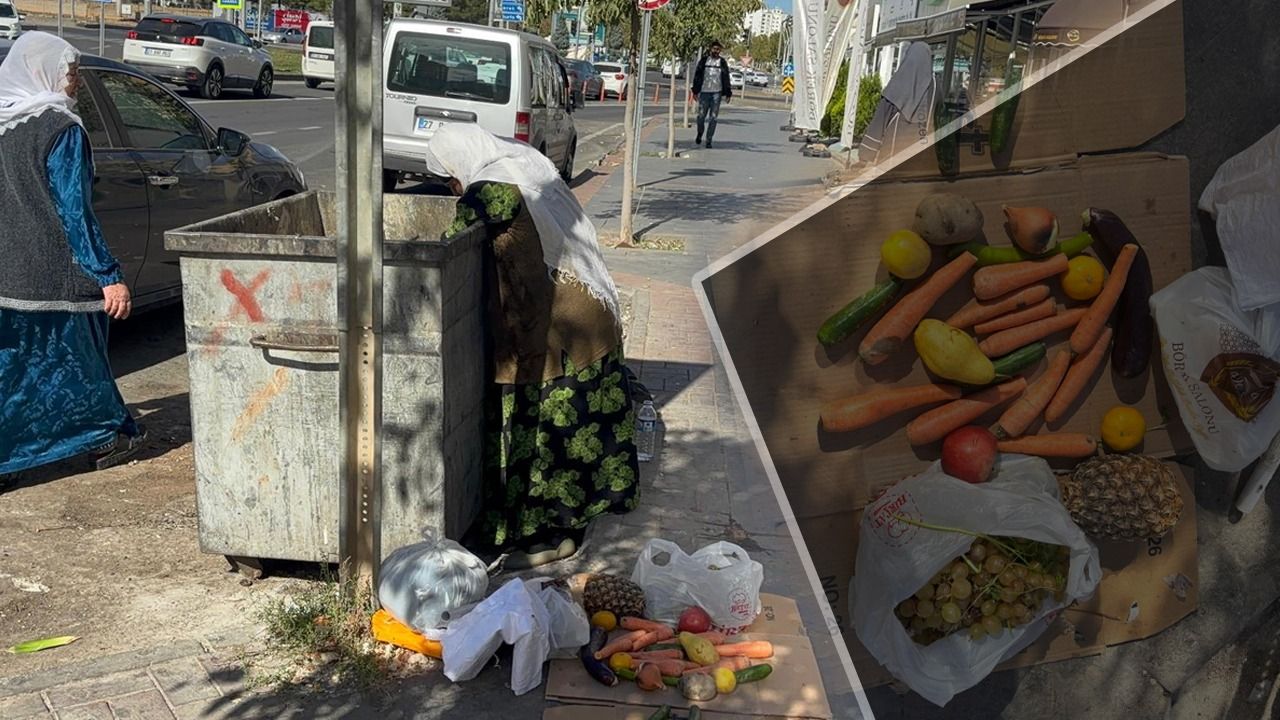 Kadın, çöpe atılan sebzeleri tek tek ayıklıyor, içlerinden sağlam olanları bir kenara ayırıyordu.