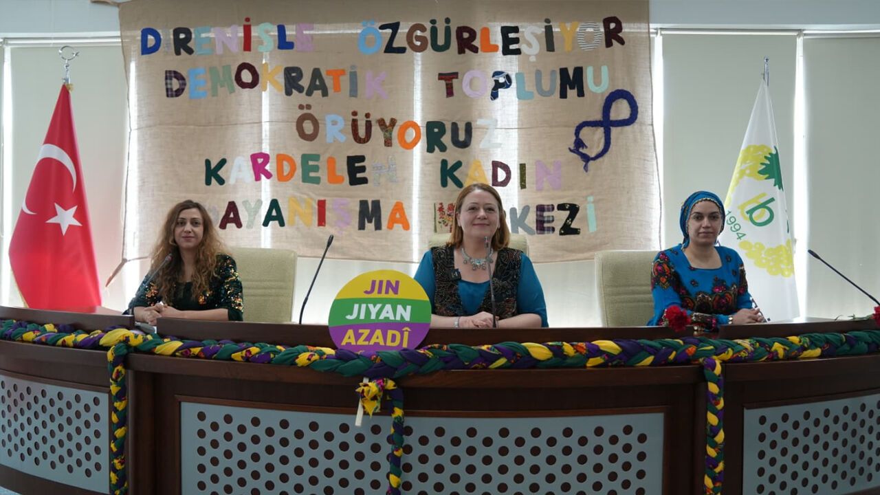 “Hem cins mücadelemizi hem kimlik mücadelemizi birlikte yürütüyoruz. 8 Mart, eşit işe eşit ücret talebiyle New York’ta 154 kadının katledilmesiyle başlayan bir süreç. Bugün bakıyoruz ki dünyanın dört bir yanında kadın mücadelesi dalga dalga büyüyor. Biz Kürt kadınları da bu mücadelenin içinde yerimizi alıyoruz. Hepimizin de içinde olduğu yüzde 40’lık kota ile başlayan, eşit temsiliyet, fermuar ve eşbaşkanlık sistemiyle biz kadınlar hayatın tüm alanlarında yer alıyoruz ve yer almaya da devam edeceğiz.