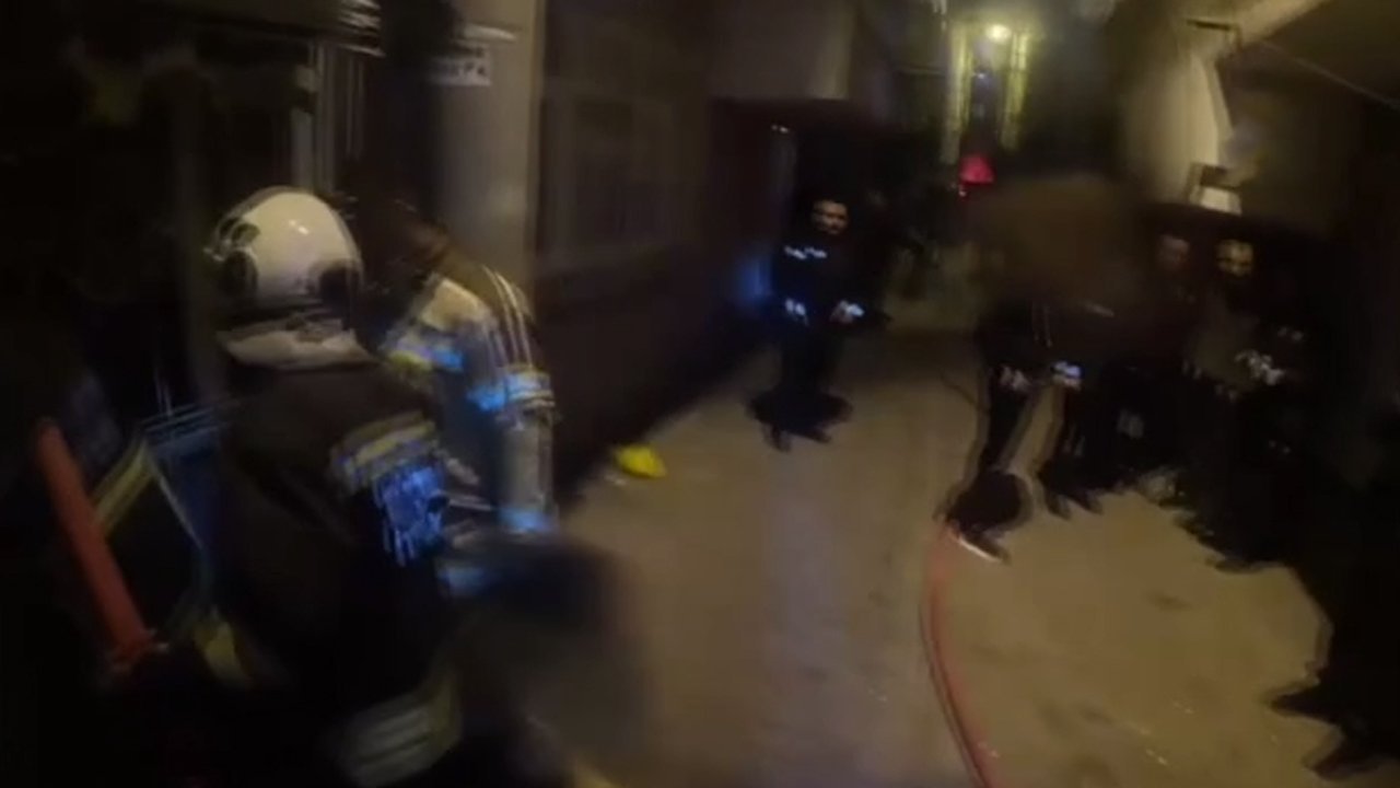 Öte yandan ekiplerin çalışması bir itfaiye erinin kask kamerasınca kaydedildi.