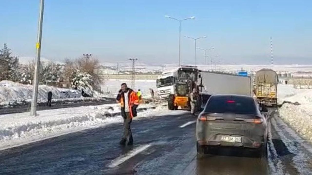 Diyarbakır-Mardin kara yolu üzerinde yoğun kar yağışı sonrası oluşan buzlanma nedeniyle sürücüsünün direksiyon hakimiyetini kaybettiği tır yoldan çıktı.