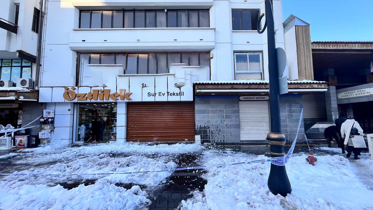 Çatıda biriken kar kütlelerinin olası düşme riskinde can kaybı yaşanmaması amacıyla belediye zabıta ekipleri bina çevresinde güvenlik şeridi çekti.