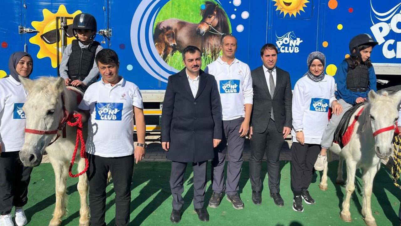 Kaymakam Atış, ziyaretinde pony atlara binerek moral bulan çocuklarla sohbet etti. Çocuklar, pony atlara binip eğlenerek hoş vakit geçirdi.