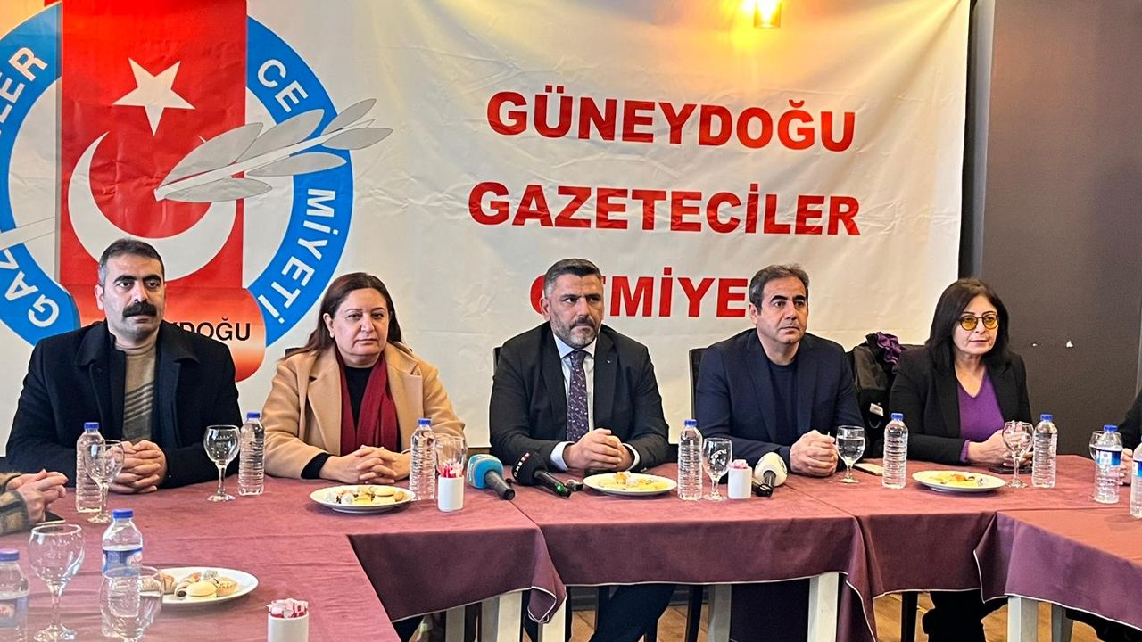 DEM Parti Diyarbakır İl Eşbaşkanı Gülşen Özer, gazetecilerin çok zor koşullar altında görev yaptığını vurgulayarak, “Gazeteciler bizim gözümüz ve kulağımızdır. 2025 yılı gazetecilik açısından iyi bir yıl olmadı. Bu kutsal görevi yerine getirirken karşılaştığınız tüm zorlukların farkındayız. Hakikatin ve haber alma özgürlüğünün yanında olduğumuzu bir kez daha ifade etmek istiyorum" diye konuştu.