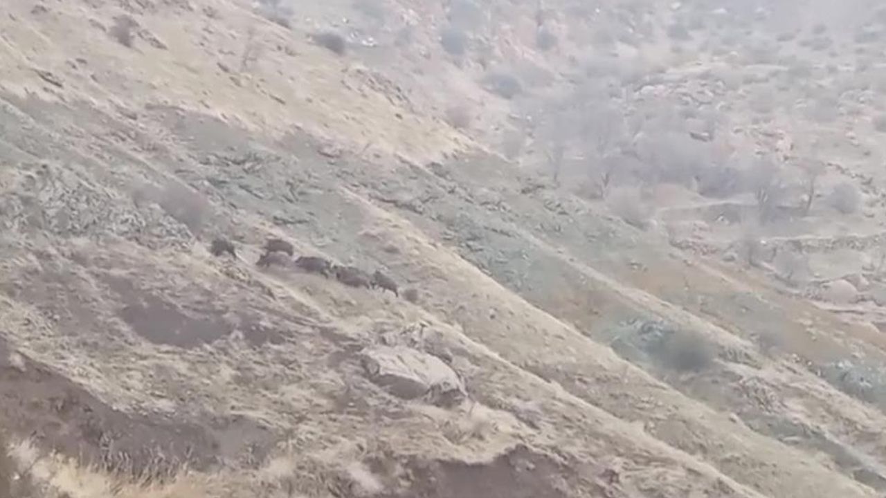 Zorlu kış şartlarında yiyecek bulmakta zorlanan yaban hayvanları, yerleşim yerlerinde yiyecek arıyor. İlçede bulunan Aşukar Dağı'nda gurup halinde gezen domuz sürüsü, Fırat Tüysüz isimli vatandaş tarafından cep telefonu kamerası ile görüntülendi.