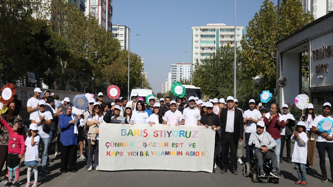 Kayapınar Belediyesi Engelli ve Yaşlı Hizmetleri Müdürlüğü, Öz Kayapınar Spor Kulübü ve Gençlik ve Spor Hizmetleri Müdürlüğü öncülüğünde engelli dernekleri, engelli spor kulüpleri, sivil toplum kuruluşları ve ailelerin katılımıyla, “Eşit ve erişilebilir bir yaşam için” Tema park’tan, spor parkına kadar barış yürüyüşü gerçekleştirildi. Yürüyüşe Kayapınar Eş Belediye Başkanı Cengiz Dündar, meclis üyeleri, başkan yardımcıları, engelli dernekleri üyeleri ve aileleri katıldı.