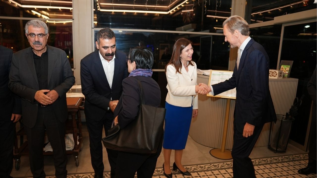 Büyükşehir Belediyesi Eşbaşkanları Serra Bucak ve Doğan Hatun, DBB Meclisi Eşsözcüsü Demet Ceylan ile Kayapınar, Sur, Yenişehir ve Bağlar belediye eşbaşkanları, Diyarbakır’da temaslarını sürdüren Avrupa Birliği (AB) Türkiye Delegasyonu Maslahatgüzarı Jurgis Vilcinskas ile AB üyesi Fransa, Avusturya, Portekiz, Belçika, İrlanda, Bulgaristan, Estonya, Yunanistan, Letonya, Litvanya, Lüksemburg, Malta, Romanya, Slovakya, Slovenya ve İsveç büyükelçilerinden oluşan heyet ile bir otelde verilen akşam yemeğinde bir araya geldi.