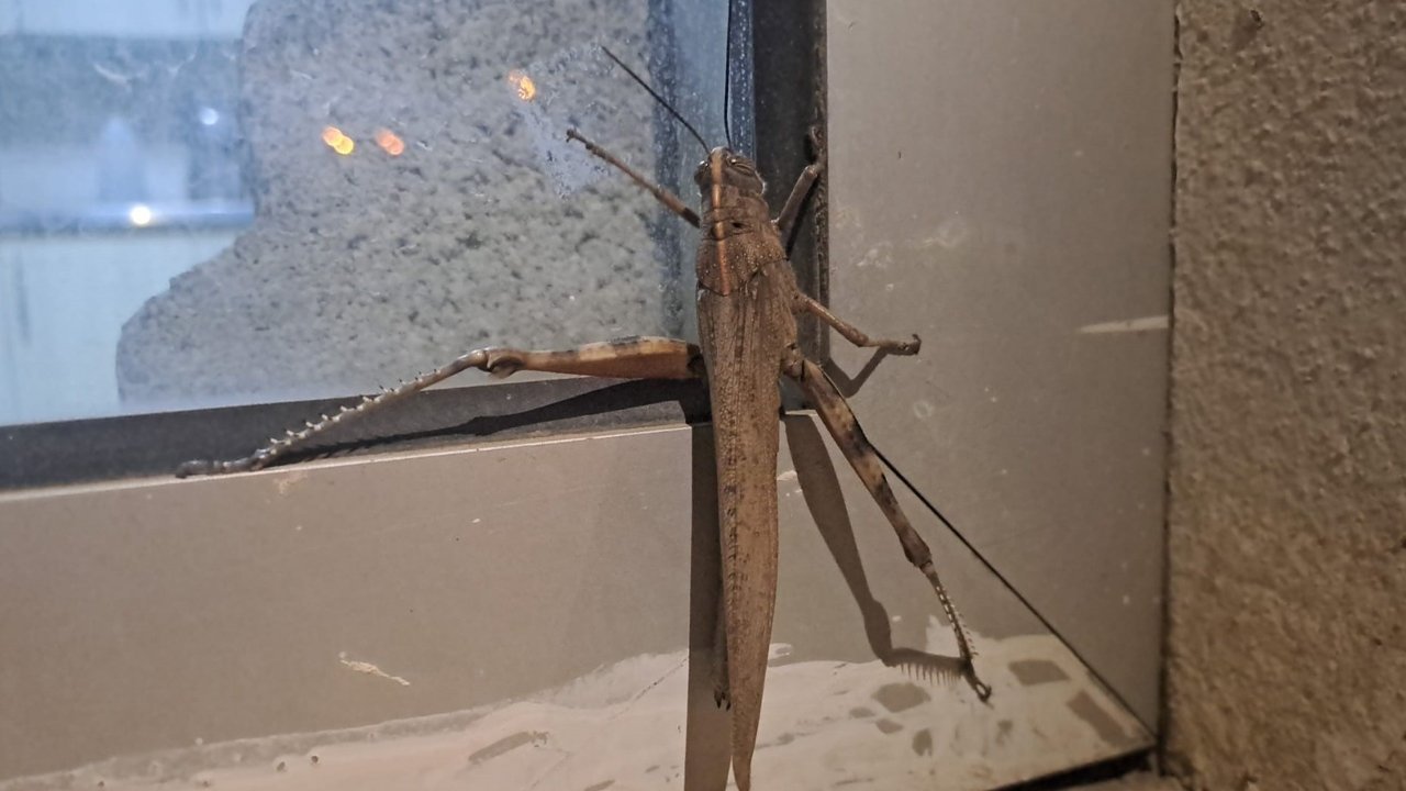 Silvan ilçe merkezinde gece nöbeti tutan 1 kişi, beklenmedik bir ziyaretçi ile karşılaştı. Güvenlik kulübesinin camına çarpan dev etçil çekirge, görenleri hayrete düşürdü. İlk etapta kuş veya taş atıldığını düşünen personel, dışarıyı kontrol ettiğinde pencere pervazı üzerinde devasa boyutlarda bir çekirge olduğunu fark etti.