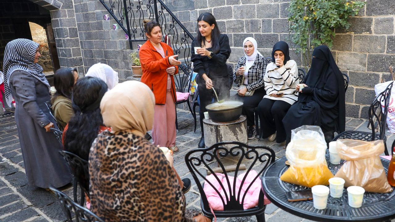 Atölyenin en çok ilgi gören bölümü ise uygulama kısmı oldu. Kadın yaşam merkezinin avlusunda yakılan ateş üzerinde büyük bir kazanda süt kaynatılarak, tariflerde sıklıkla kullanılan baharatlarla doğal ve besleyici bir karışım hazırlandı. Tarçın, zencefil, zerdeçal ve balın birleşimiyle ortaya çıkan bu geleneksel içecek, hem lezzeti hem de şifa potansiyeliyle katılımcıların beğenisini aldı.