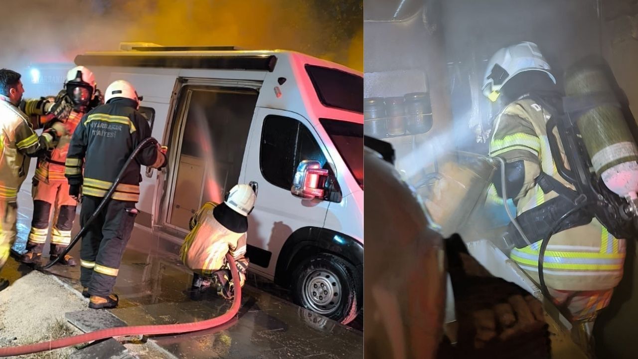 Yangında karavan kullanılamaz hale geldi. İtfaiye erlerinin yangına müdahalesi ise kask kamerasına yansıdı. Görüntülerde karavanın dumanla kaplandığı görüldü.