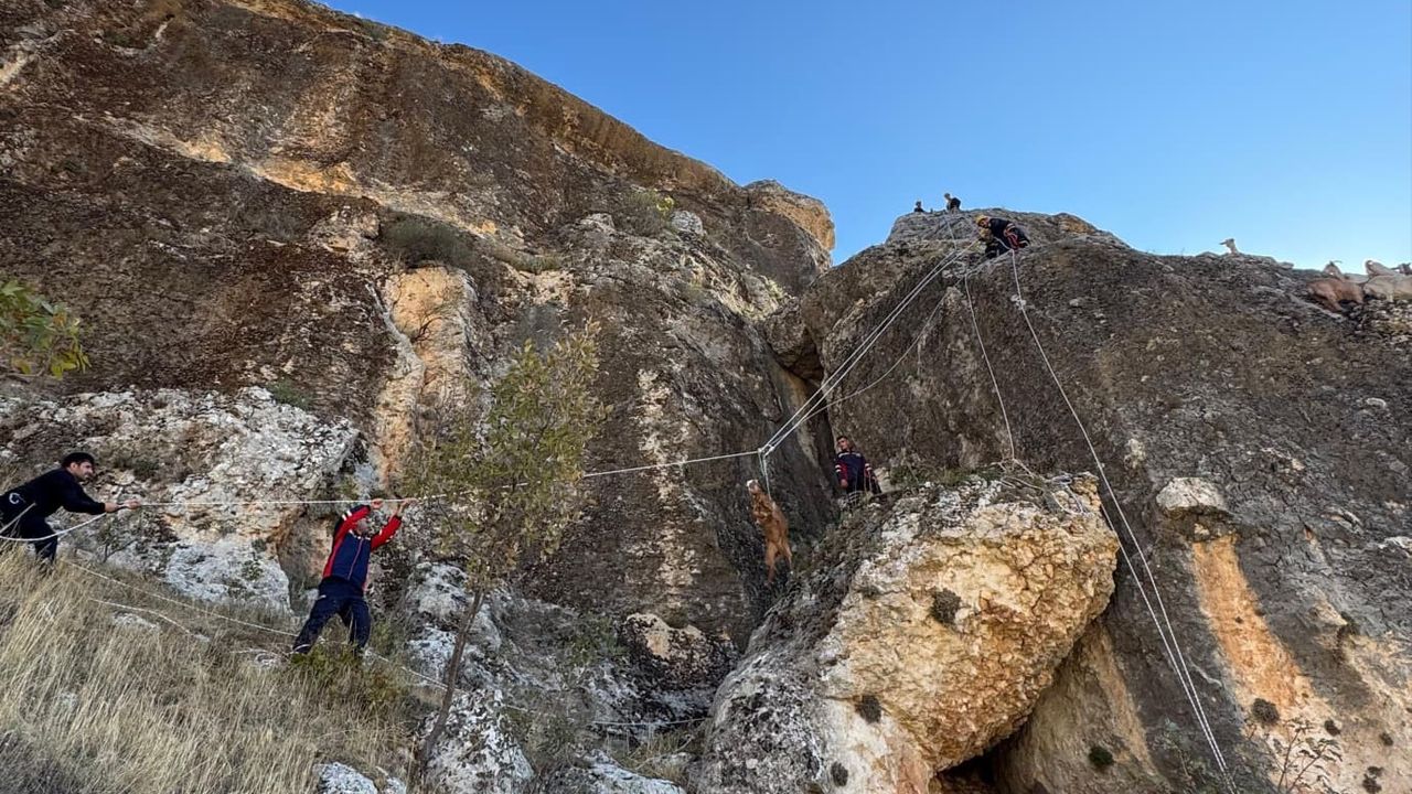 Eğil ilçesinde 25 keçi, otlanmak için indikleri kayalıklarda mahsur kaldı. Besicinin ihbarı üzerine olay yerine itfaiye ekipleri sevk edildi. Ekipler, halat yardımıyla kayalıklardan aşağı sarkarak keçileri mahsur kaldıkları yerden tek tek yukarı çıkartıp sahibine teslim etti.