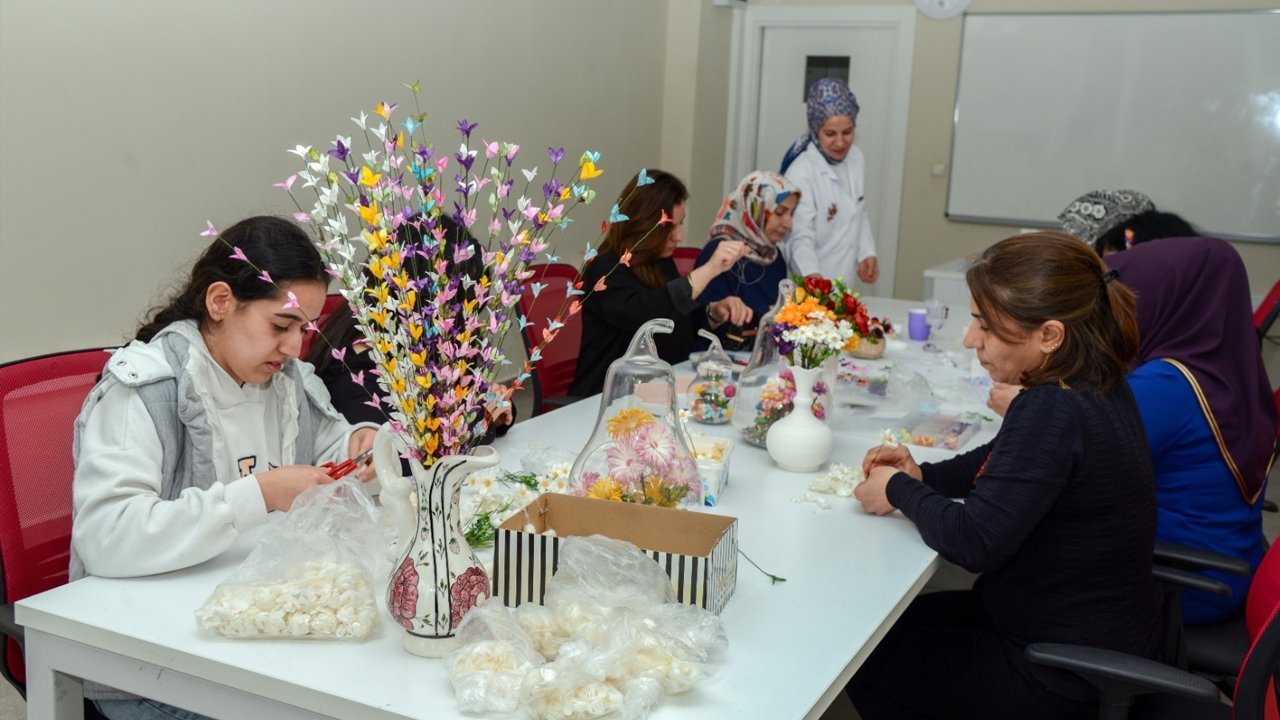 Sosyal Hizmetler Dairesi Başkanlığı bünyesindeki kurslar, sınırlı kontenjanla hizmet vermesine rağmen kadınlardan yoğun ilgi görüyor. Kimi kursiyerler günlük hayatın telaşından uzaklaşarak yeni bir hobi edinirken, kimileri de aldıkları eğitimlerle kendi işyerlerini açma yolunda ilerliyor. Kentin farklı mahallelerinden gelen 357 kadının katıldığı kurslarla, bir yandan kadınların istihdama katılımı hedeflenirken bir yandan da her kadının kendi hikâyesini güçlendirdiği kolektif bir dönüşüm alanı sunuluyor.