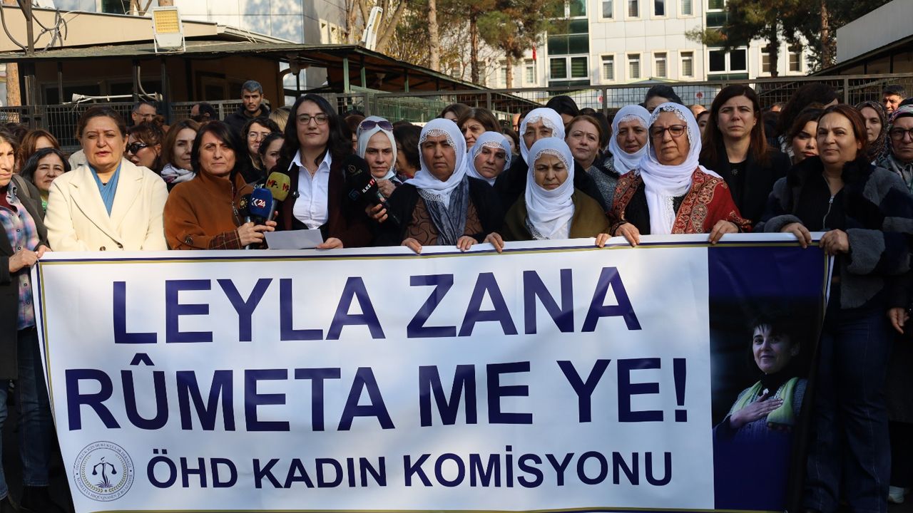 Özgürlük için Hukukçular Derneği (ÖHD) Kadın Komisyonu, Bursaspor'la başlayan Ankaragücü, Rizespor'la devam eden Kürt siyasetçi Leyla Zana'ya yönelik gerçekleşen cinsiyetçi ve ırkçı saldırıya karşı Diyarbakır Adliyesi önünde açıklama yaptı. Açıklamayı yapan ÖHD Eş Genel Başkanı Ekin Yeter, "Kürt siyasetinin ve kadın mücadelesinin önemli isimlerinden Leyla Zana'ya yönelik gerçekleştirilen hakaretleri, yalnızca münferit bir taraftar tepkisi olarak değil; erkek egemen sistemin ve ırkçı kodların birleştiği organize bir saldırı olarak görüyoruz" dedi.