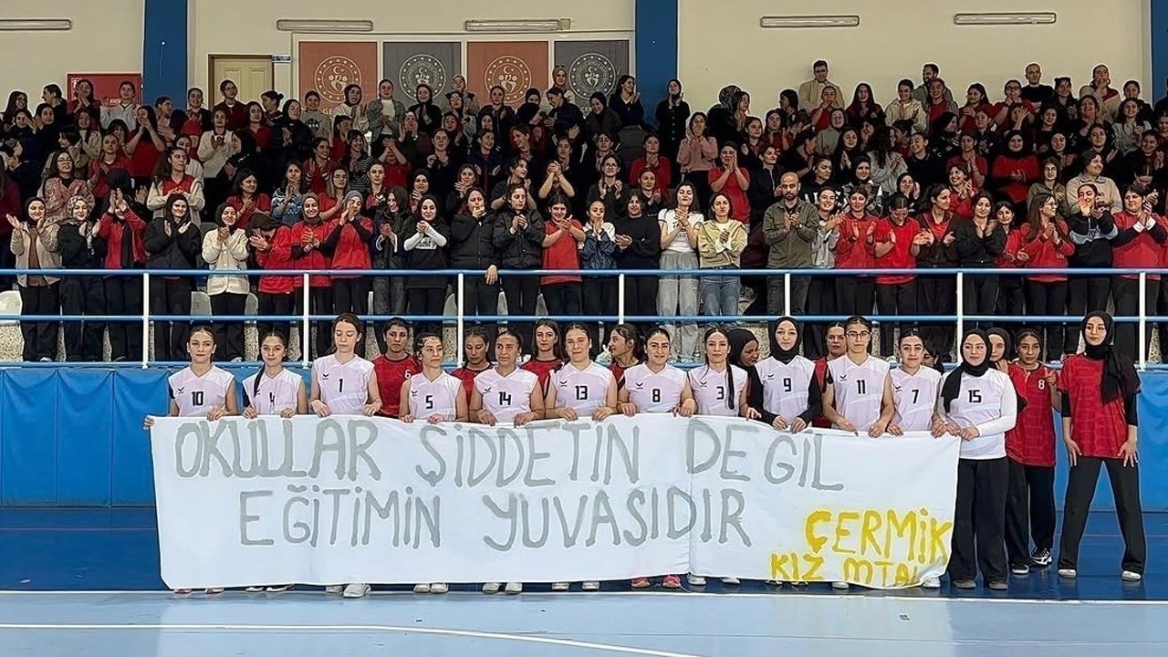 Çermik İlçe Milli Eğitim Müdürlüğü ile İlçe Gençlik ve Spor Müdürlüğü bünyesinde ortak düzenlenen Liseler Arası Voleybol Turnuvası açılış maçına öğrencilerin açtığı pankart damga vurdu. Çermik Kız Mesleki ve Teknik Anadolu Lisesi öğrencileri tarafından açılan ''Okulla şiddetin değil eğitimin yuvasıdır'' pankartı büyük ilgi gördü.