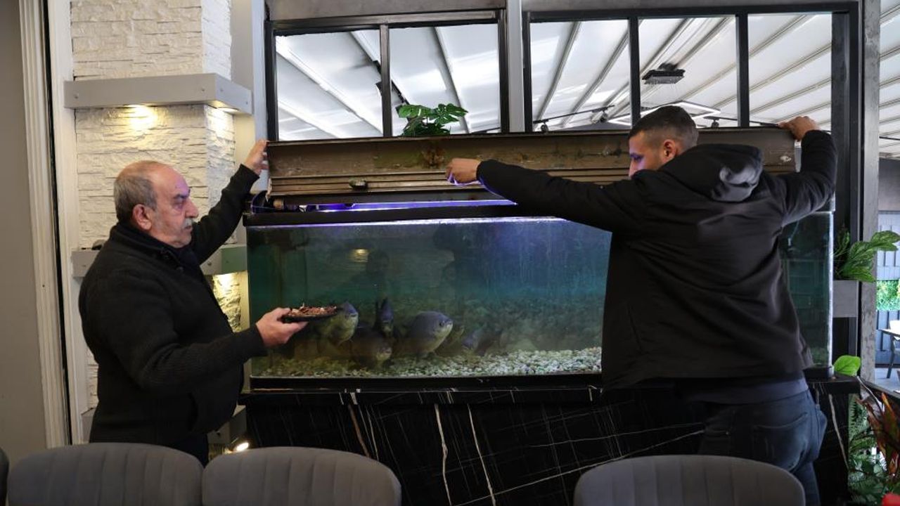 Diyarbakır’da işletme sahibi paçacı Şaban Yakşi, keskin dişleri, etçil ve sürü halinde gezdiklerinde tehlikeli olan pirana balıklarını özel yemlerinin yanı sıra günde 2-3 porsiyon kelle paça, dil ve işkembeyle besliyor.