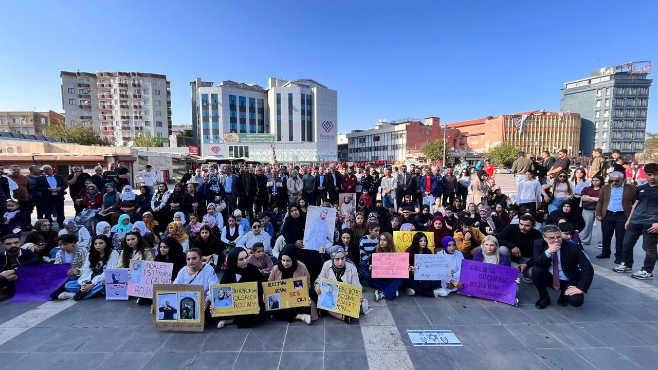 Diyarbakır’da, Dağkapı Meydanı’nda bir araya gelen Rojin’in ailesi, Diyarbakır Büyükşehir Belediye Eş Başkanı Serra Bucak, Diyarbakır Baro Başkanı Abdülkadir Güleç ve çok sayıda kadın, adalet talebiyle oturma eylemi gerçekleştirdi.