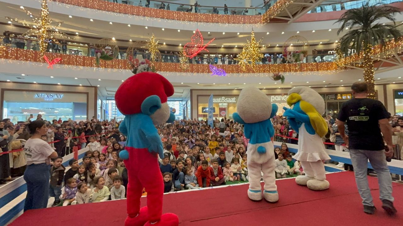 Alışveriş merkezinde düzenlenen özel çocuk etkinliğinde sahneye çıkan Şirinler çizgi film karakterleri, hem sahne performansları hem de şarkılarıyla küçükleri adeta büyüledi. Çocuklar, Şirinler ile birlikte şarkılar söyleyip dans ederek doyasıya eğlendi.